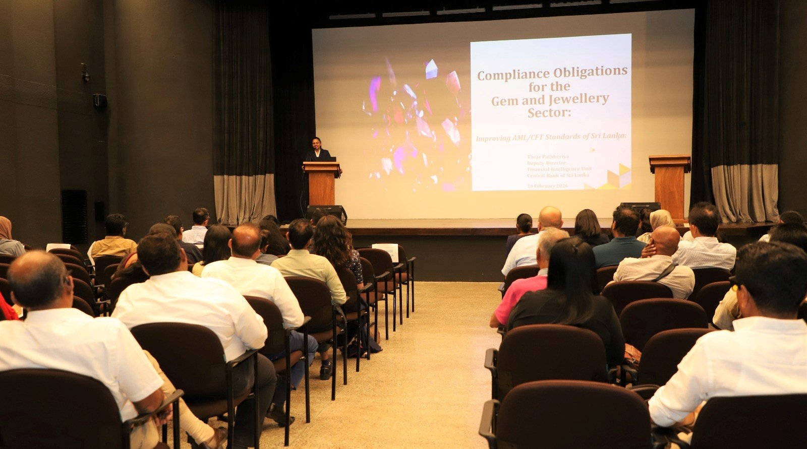 The National Gem and Jewellery Authority, together with the Sri Lanka Gem and Jewellery Association and the Financial Intelligence Unit of Sri Lanka, successfully conducted an awareness session on 16th February 2026 at the DHPL Building Auditorium, Colombo 02 for the gem and jewellery dealers, exporters and gemologists located in Colombo.